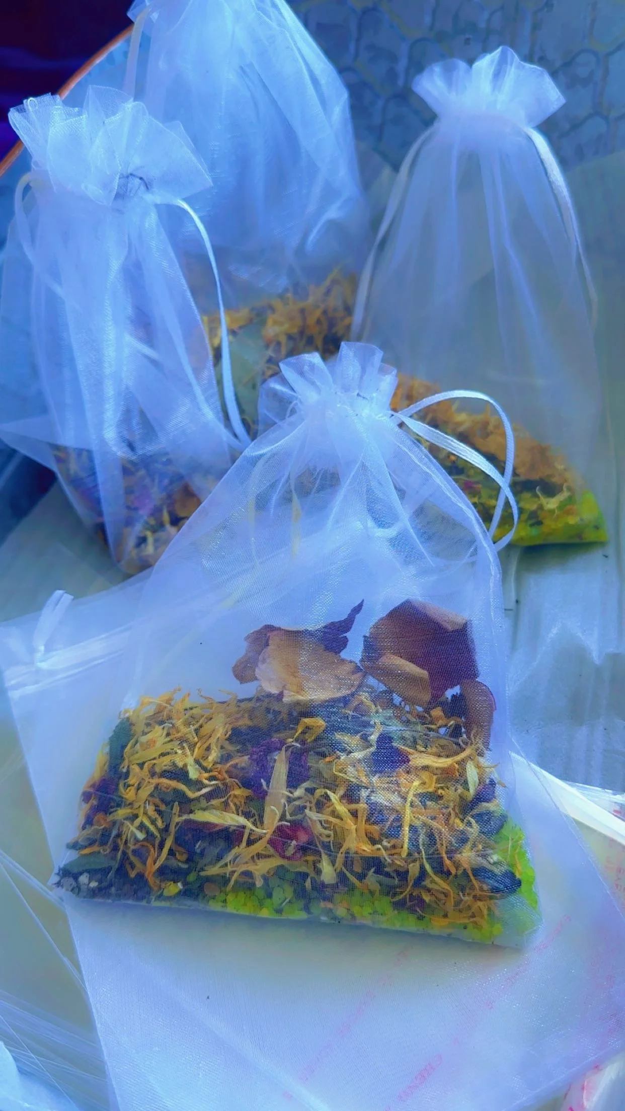 Our salt baths are made with organic ingredients, including but not limited to magnesium, turmeric, eucalyptus, and charcoal. Each formula is carefully crafted and divinely inspired with your well-being in mind.